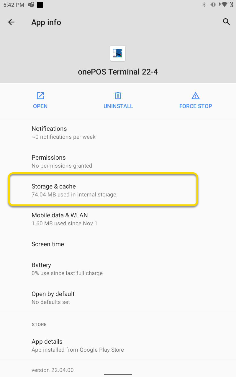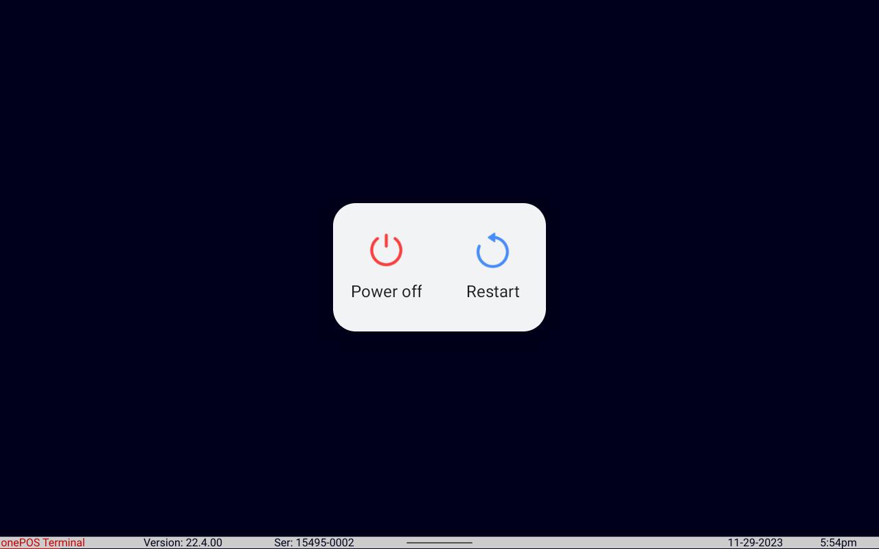 Check the Version: Make sure the onePOS app version matches the onePOS terminal version of the software. If the first two sets of numbers "XX.X" do not match, uninstall the app and install the correct version from the Google Play Store.