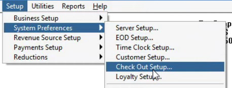 Then we need to go into Check out setup so go into setup then system preferences then Check out set up.