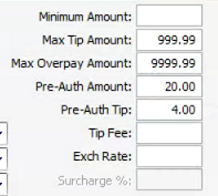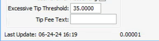 In the Box labeled "Tip Fee" in the top middle of the screen you can enter in a tip fee amount. It is in percent already so for a 2.5% fee you need to enter "2.50" into the box.