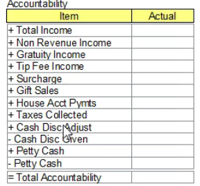 Additionally, you can see the total amount of tip fees collected in the daily sales report. It will be in the "Accountability" section, labeled "+Tip Fee Income". It should look something like this:
