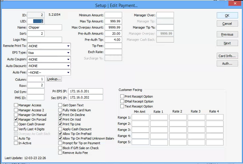 Then select the payment you would like to apply the tip fee towards. Most cases it will be the credit cards or Chipper payment, but if they have multiple card payments it will have to be applied to each one to reflect accurately. In this case we have "chipper" as our payment and it should bring you to a screen that looks like this: